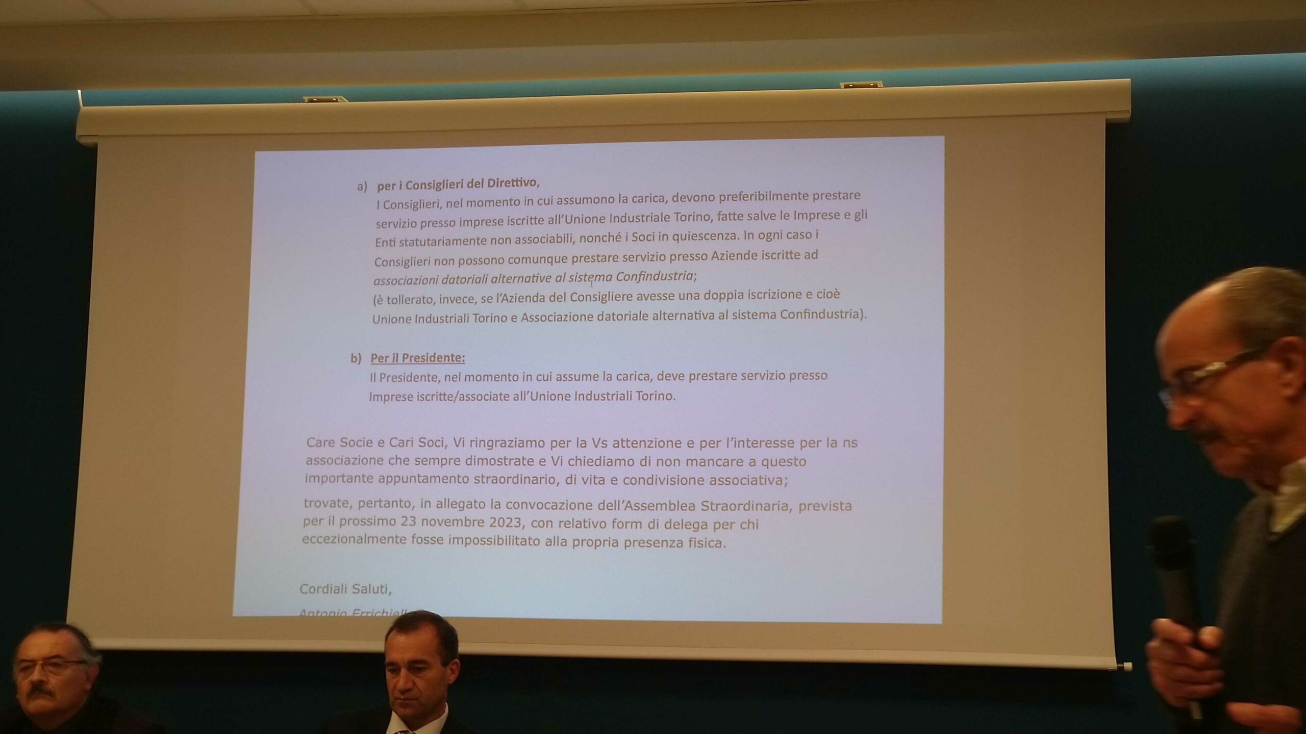 Prima della votazione il Presidente e i due VP Lazzero e Mattioli hanno espresso le motivazioni che hanno portato il Consiglio Direttivo ad esprimere un’adesione complessiva alla proposta dell’Unione Industriali Torino, posizione da sottoporre comunque al parere vincolante dei Soci.