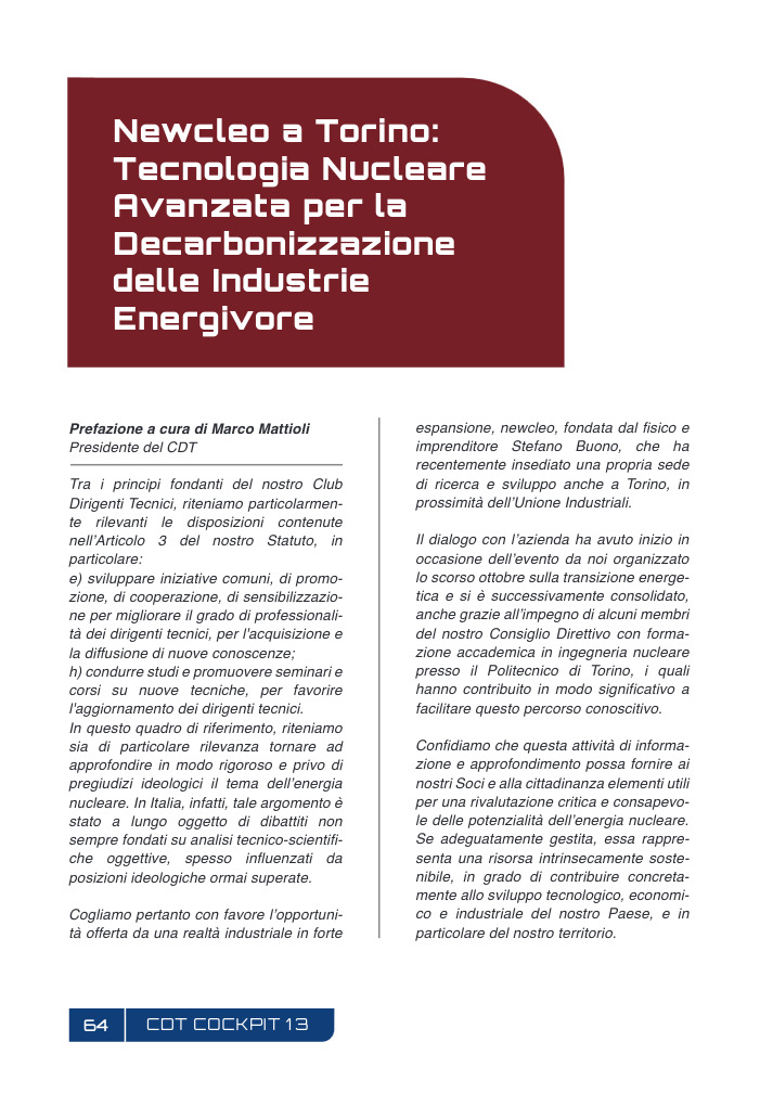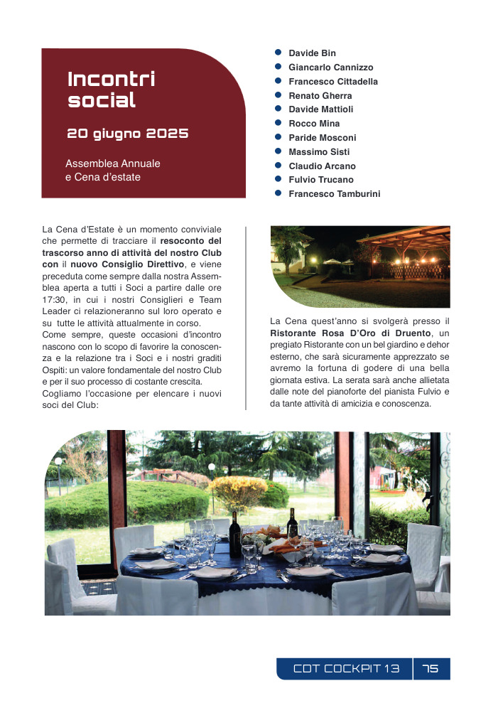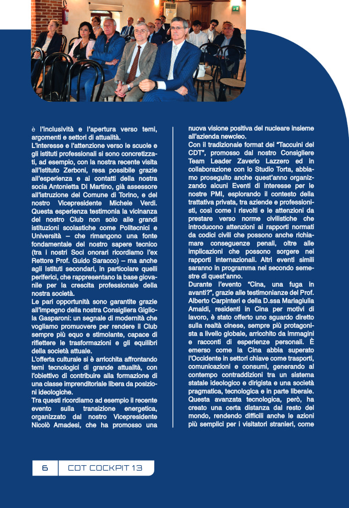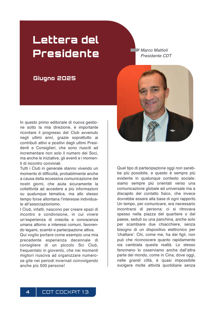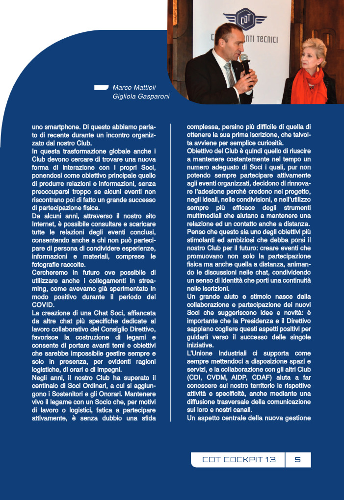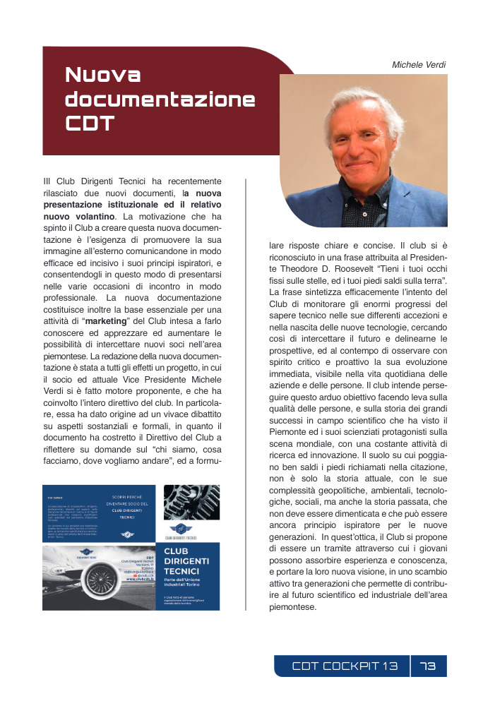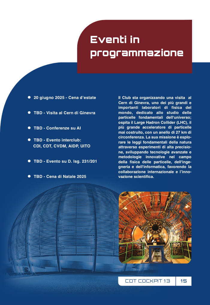 Leggi il nostro magazine CDTCockpit per ripercorrere eventi, incontri, seminari, articoli tecnico-scientifici, testimonianze e per respirare a pieno la vita del club ed essere tu stesso elemento attivo