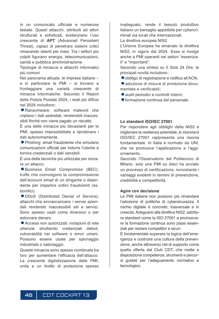 TUTTI I NUMERI DEL CDT COCKPIT 2025