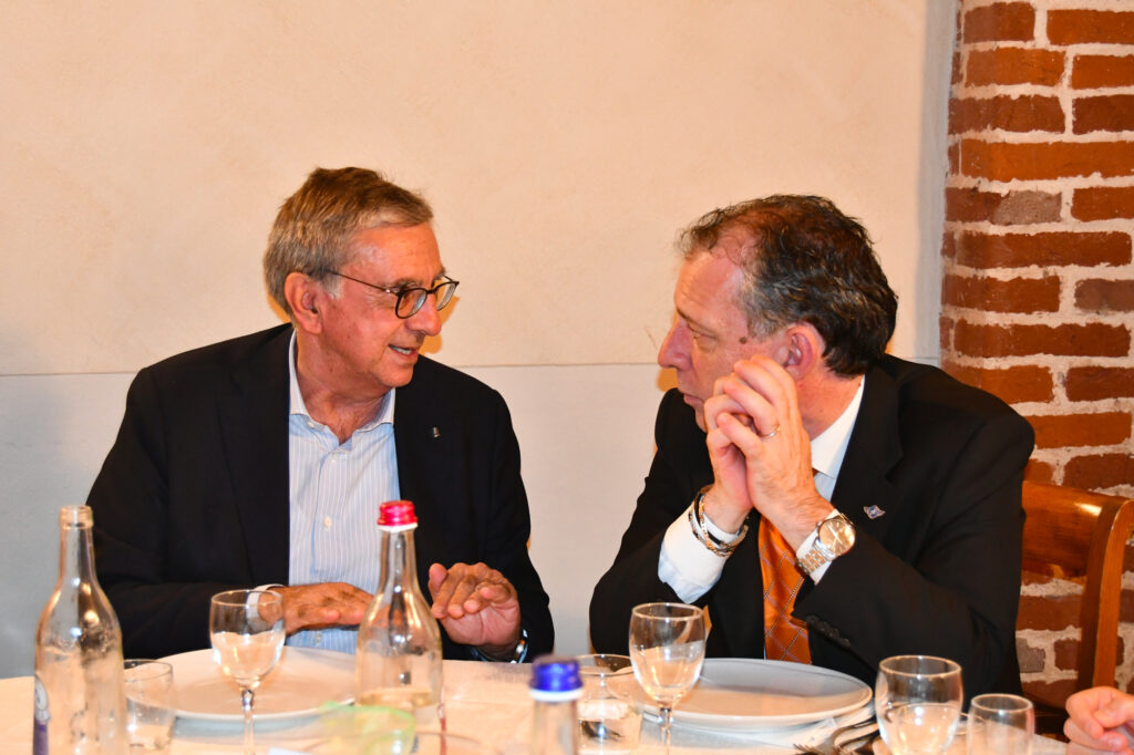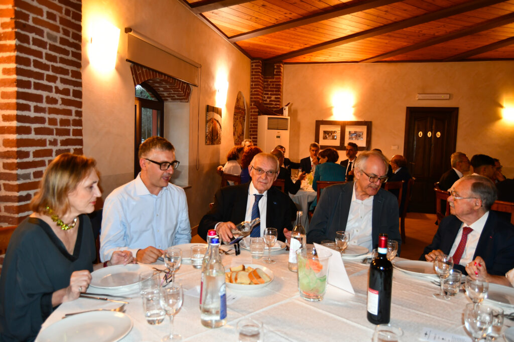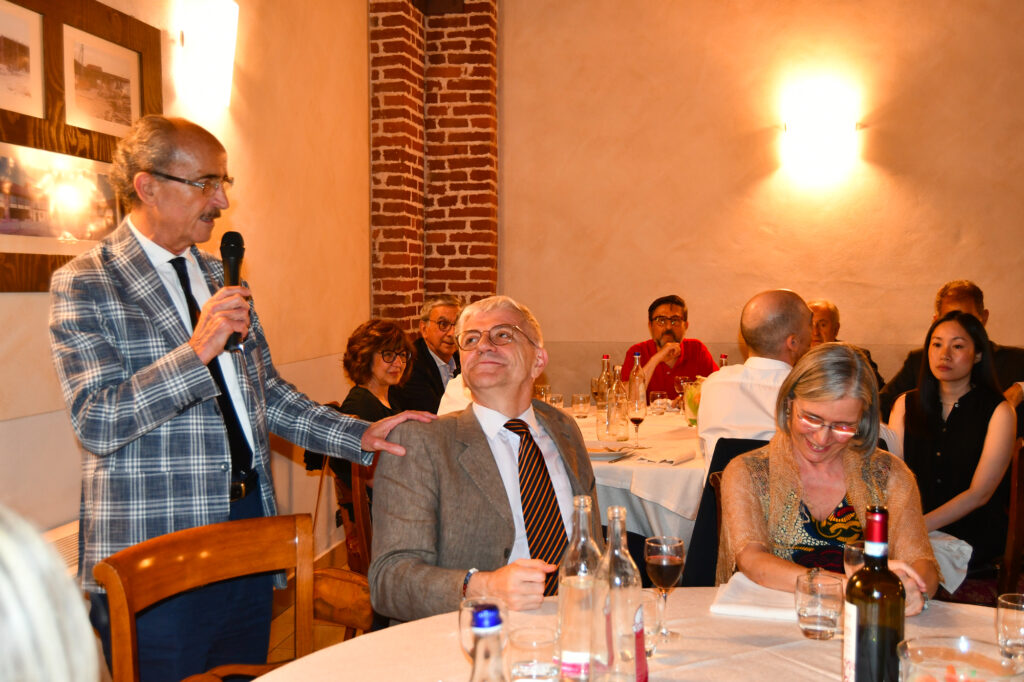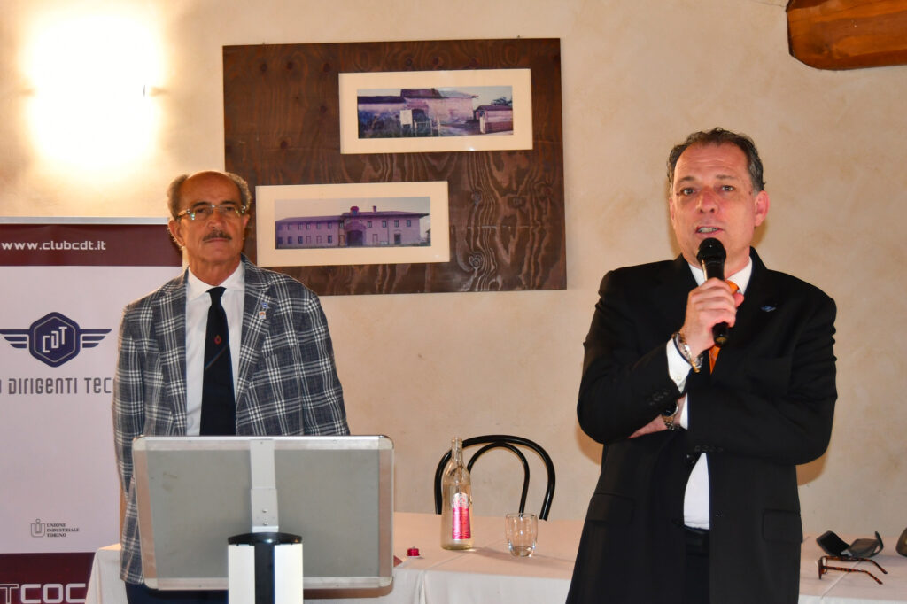 Il Presidente a sua volta nel suo saluto generale, nomina tutti gli Ospiti del tavolo presidenziale intrattenendosi con ciascuno di loro, i Presidenti dei Club CDI e AIDP, Gindro e Barbero, il nuovo Socio Alessandro Balsamo di INRiM, il nuovo Presidente in pectore CDT, Marco Mattioli, con le rispettive Signore e il Socio Luigi Boggio.