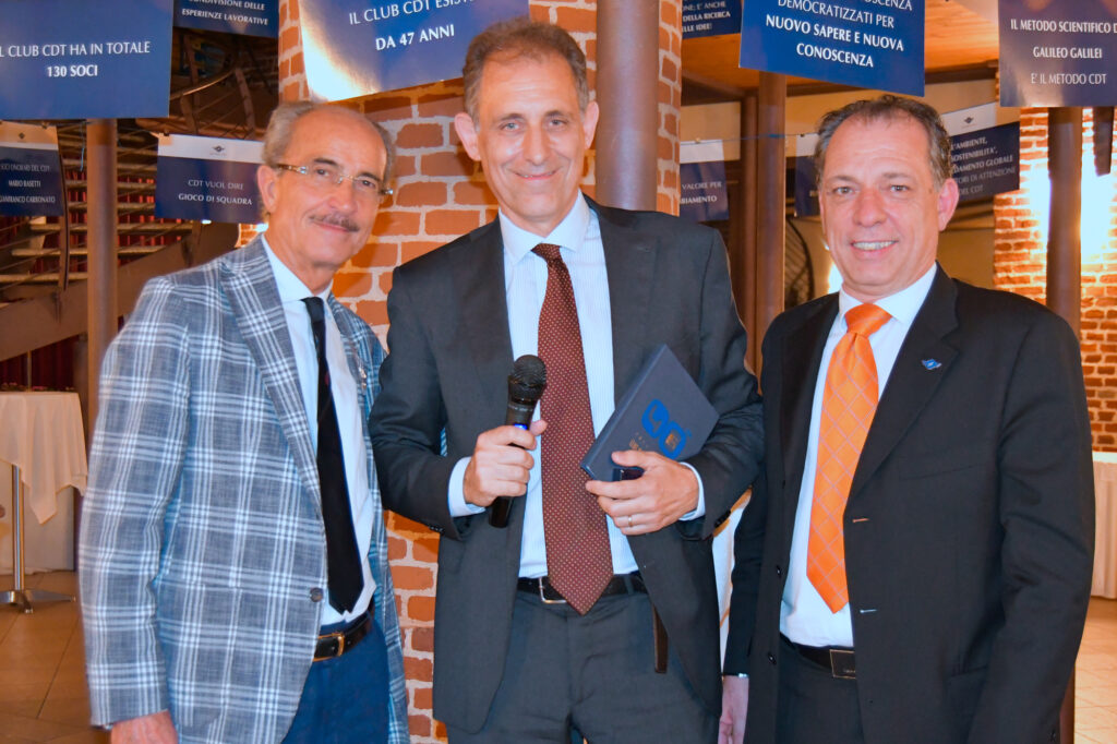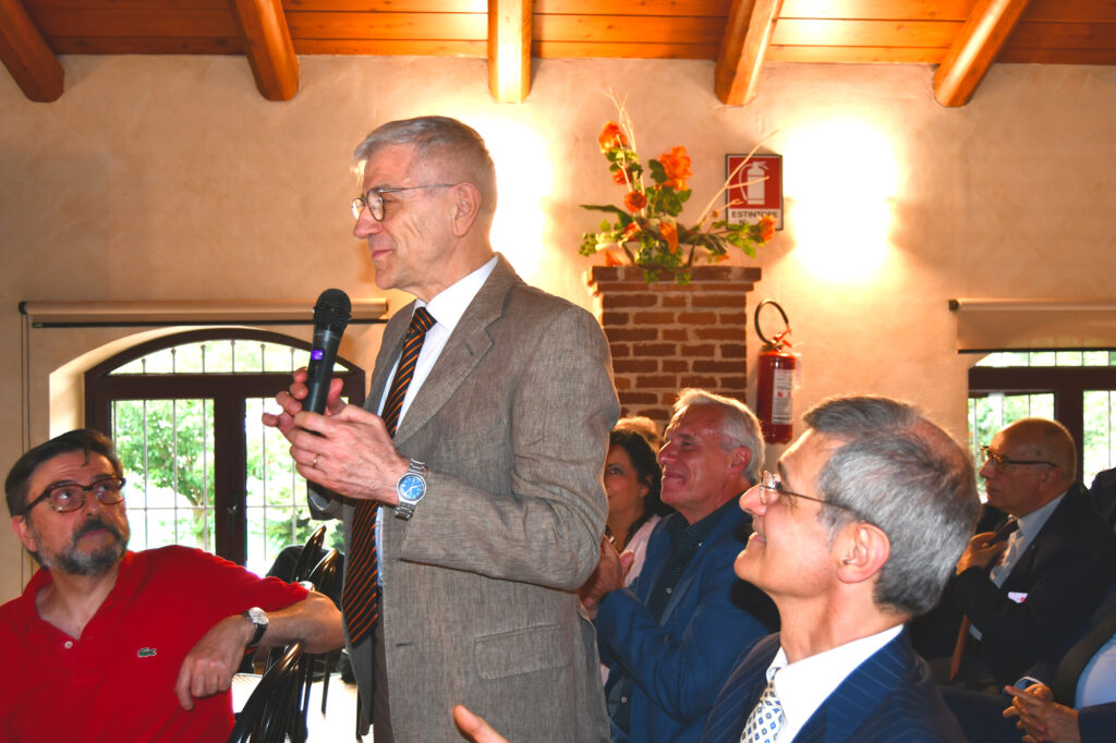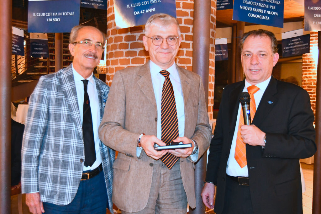 “Naturalmente nomino qui i nostri 3 Soci Onorari Rasetti-Carbonato-Saracco, 3 Figure di spicco nei 3 campi della Scienza, dell’Industria e dell’Accademia, con i quali c’è stato un contatto molto fluido e non mi hanno mai fatto mancare la loro vicinanza e partecipazione agli eventi del Club, innalzandone sempre valore e prestigio: li ringrazio”