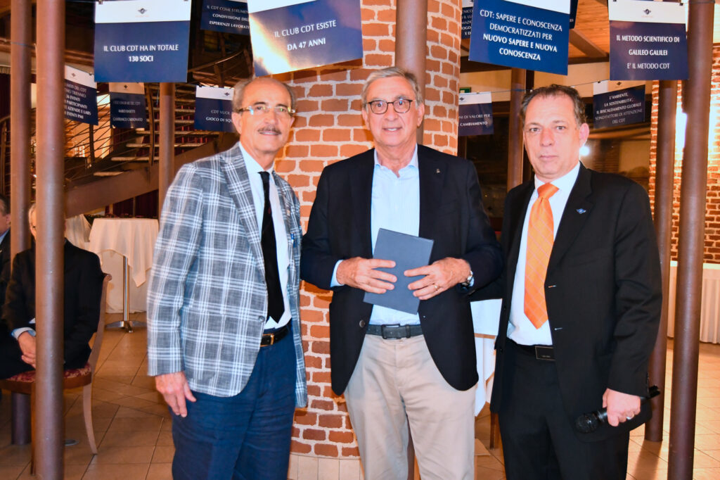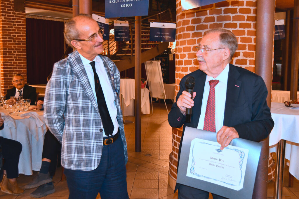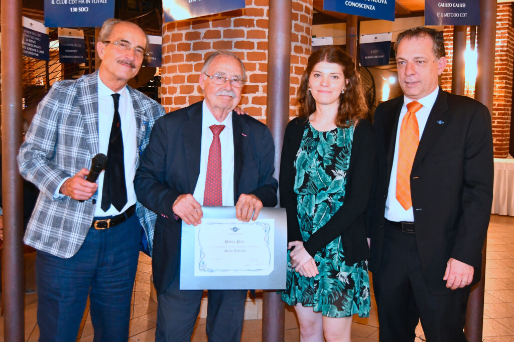 - Piero Pizzi per la sua lunga militanza nel CDT, portando grandi contributi di idee e di conoscenza durante l’intera sua permanenza nel Club, riceve la Pergamena di Socio Emerito.