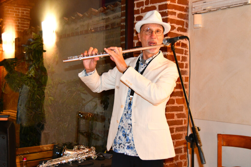 La serata raggiunge il suo apice di armonia conviviale quando il sassofono di Giorgio, penetra l’atmosfera della Sala senza indugio con i pezzi del suo repertorio, pieni di note “strappapplausi”!