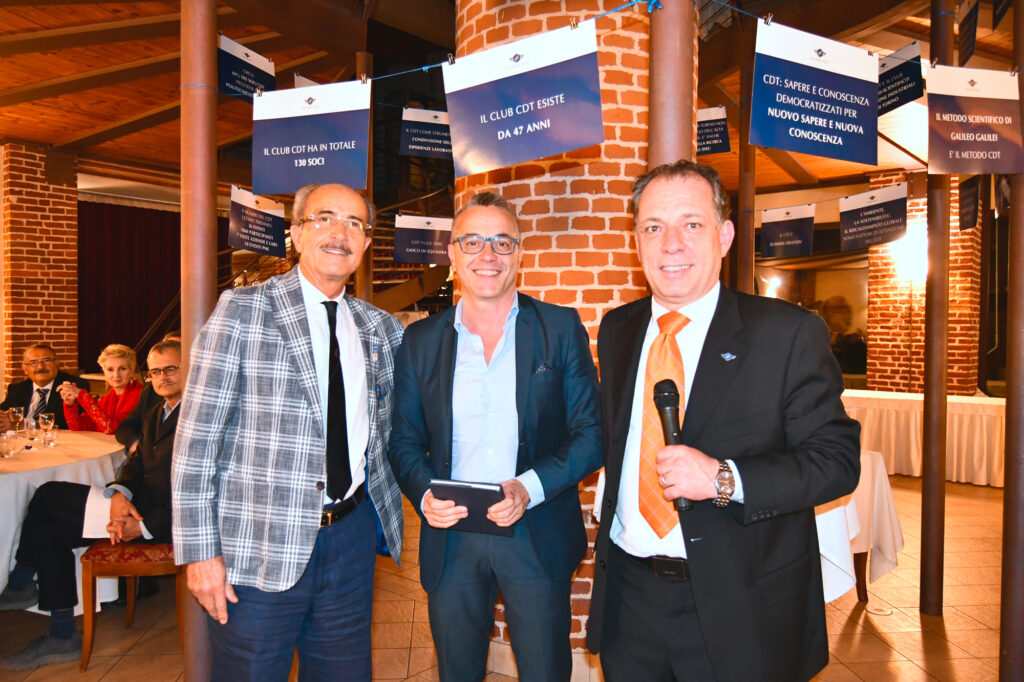 A metà serata il Segretario Martino con il Presidente iniziano la premiazione dei nuovi Soci CDT, con una copia del Libro del 40ennale del Club e la relativa Spilla CDT; viene ceduto il microfono ad ognuno di loro, dopo la fotografia di rito, e così ognuno racconta un po’ di sé, con qualche simpatico aneddoto per approfondire la loro conoscenza.