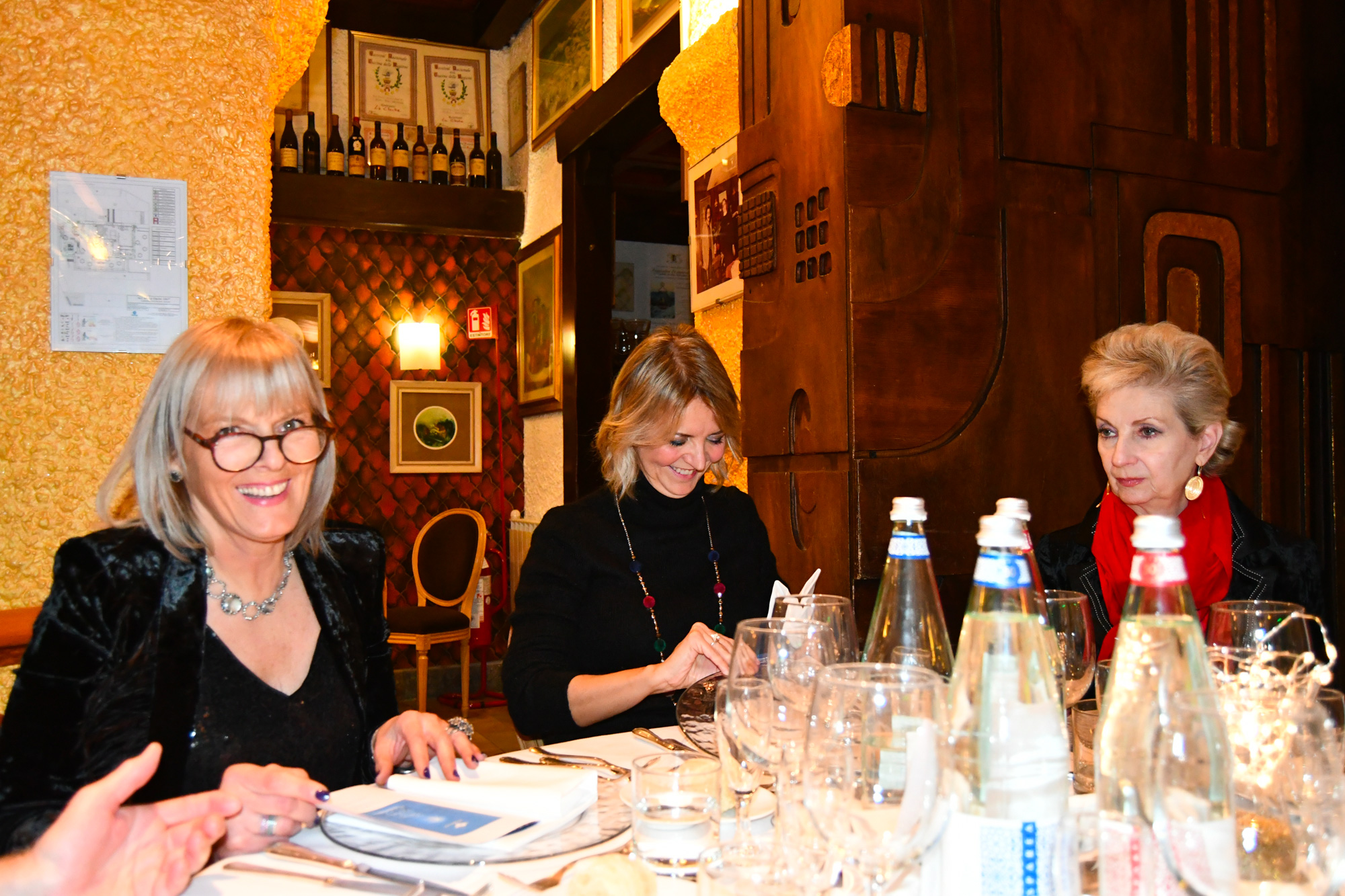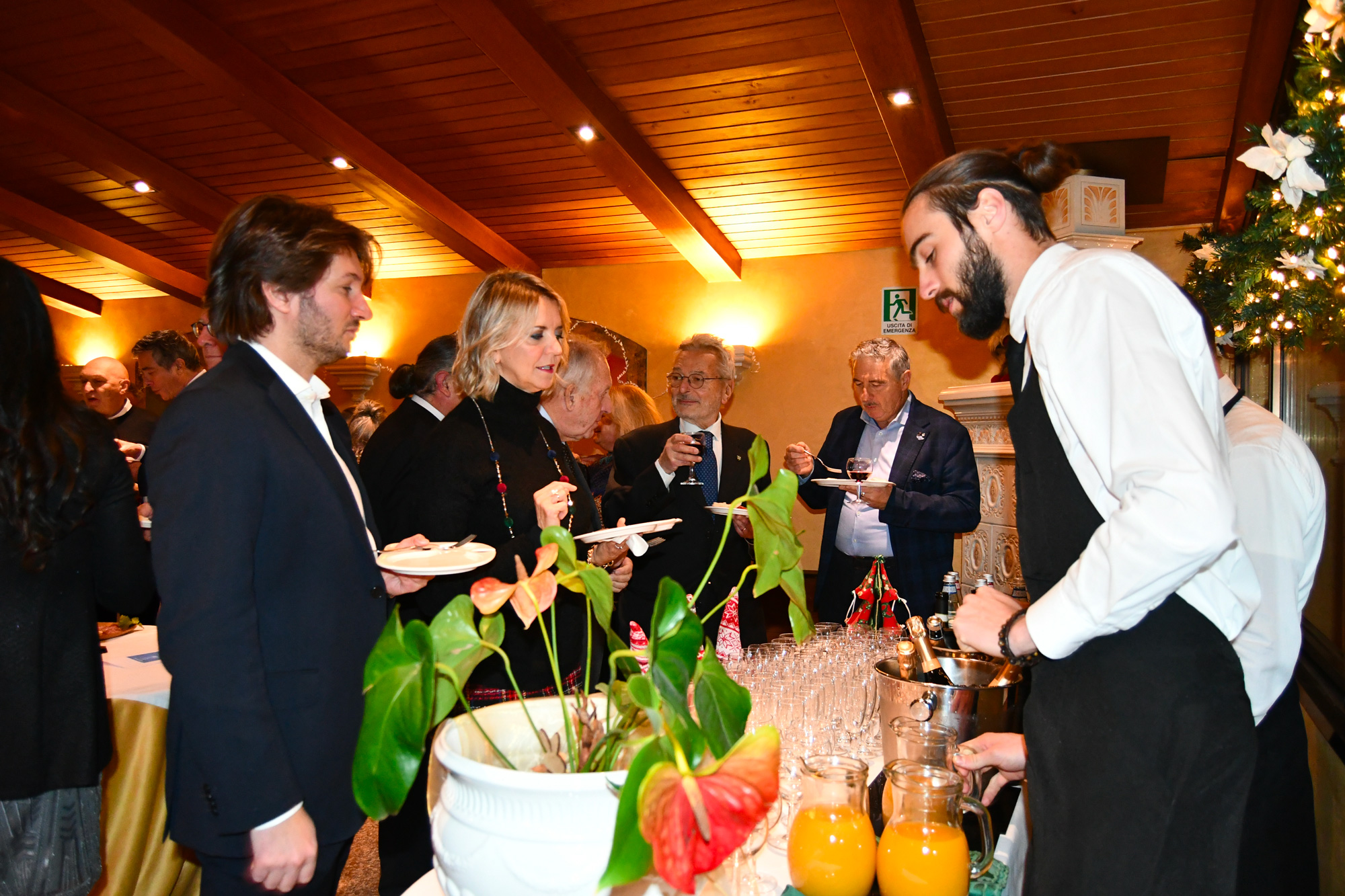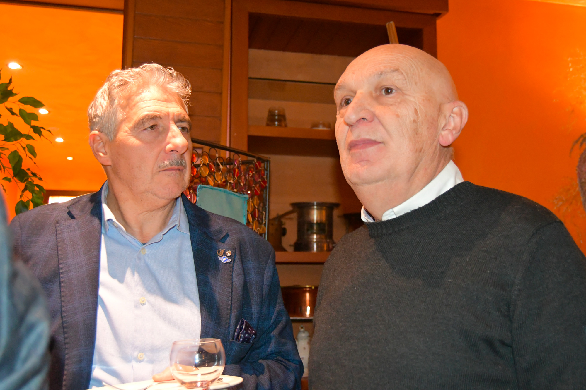 La cena è stata inaugurata da un buffet di antipasti allestito in una sala separata, davvero utile per i saluti iniziali, ed avere tutti i partecipanti al gran completo. Successivamente, il Presidente Marco Mattioli ha dato semaforo verde per l’accesso ai tavoli, accuratamente predefiniti nel numero dei commensali e nella composizione: ad ogni coperto era disponibile la lista del menù e la nuova brochure del Club, recentemente elaborata.