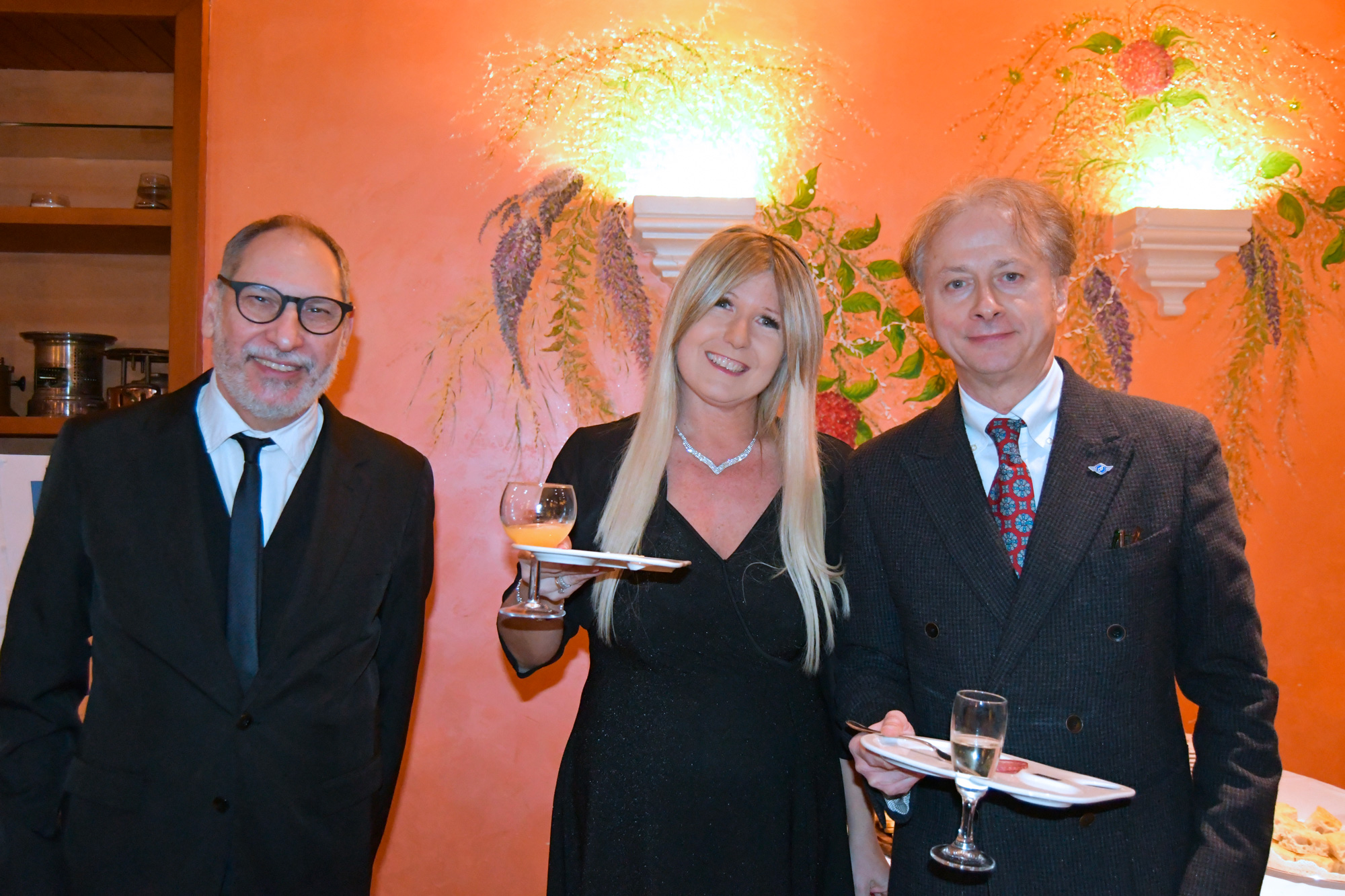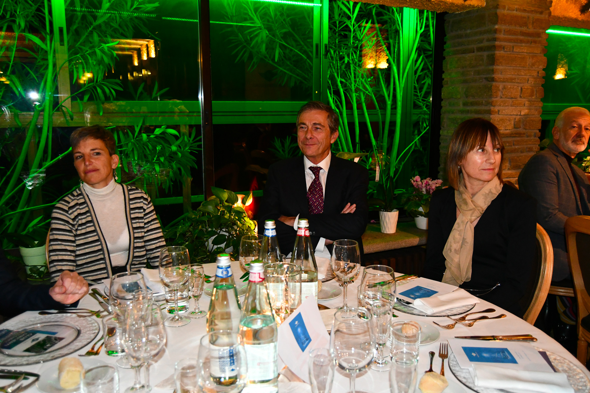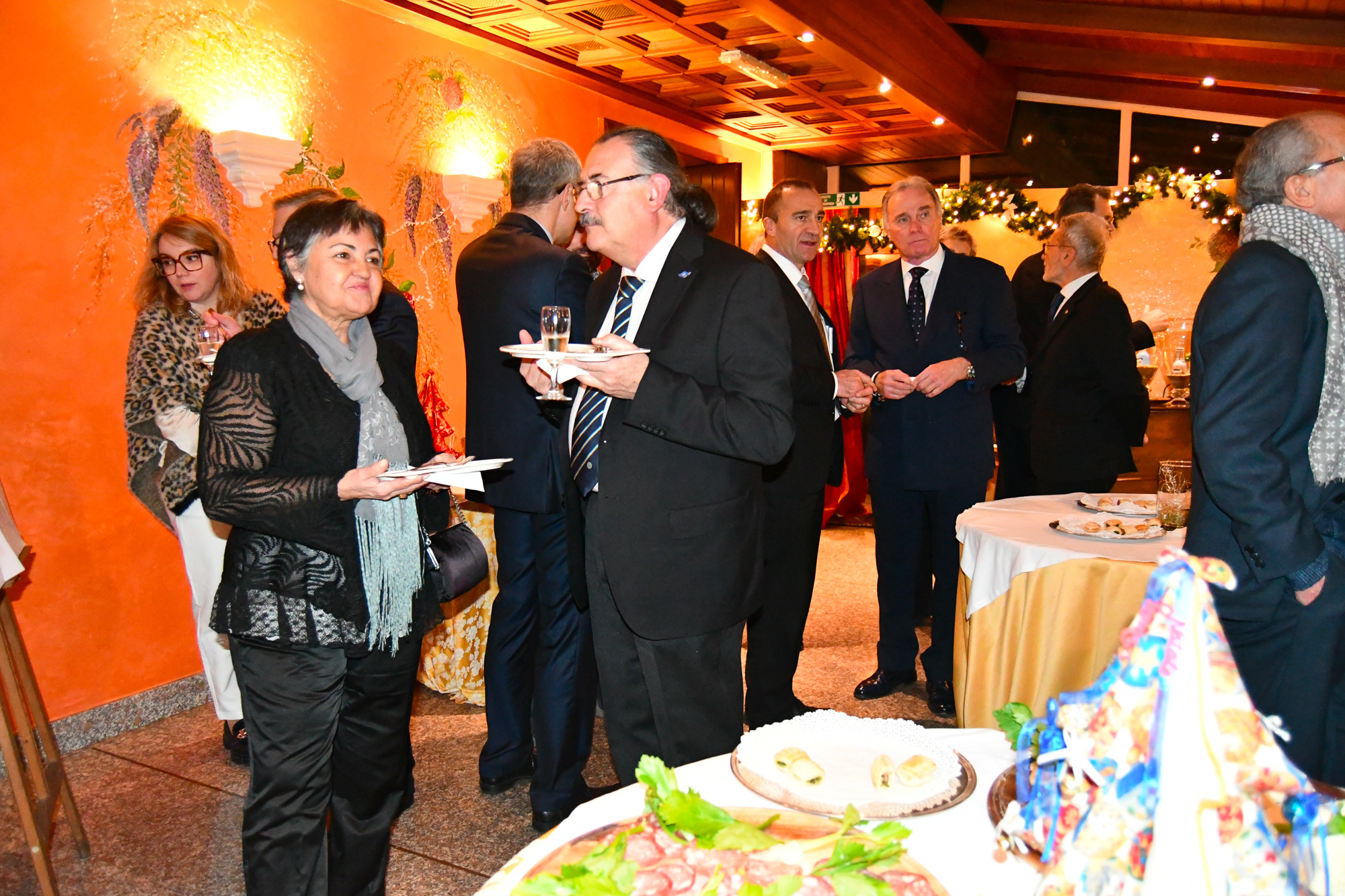 La cena è stata inaugurata da un buffet di antipasti allestito in una sala separata, davvero utile per i saluti iniziali, ed avere tutti i partecipanti al gran completo. Successivamente, il Presidente Marco Mattioli ha dato semaforo verde per l’accesso ai tavoli, accuratamente predefiniti nel numero dei commensali e nella composizione: ad ogni coperto era disponibile la lista del menù e la nuova brochure del Club, recentemente elaborata.