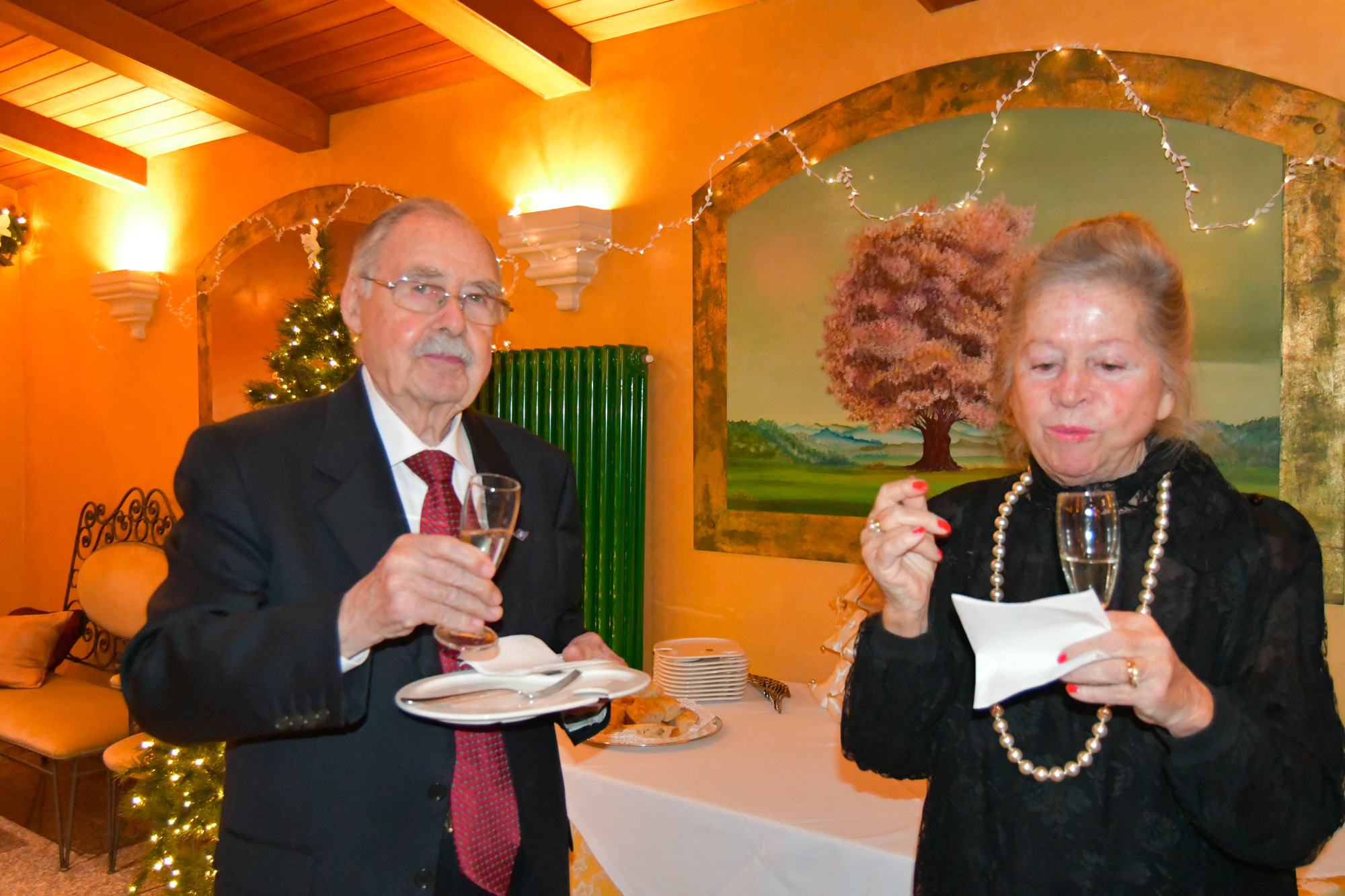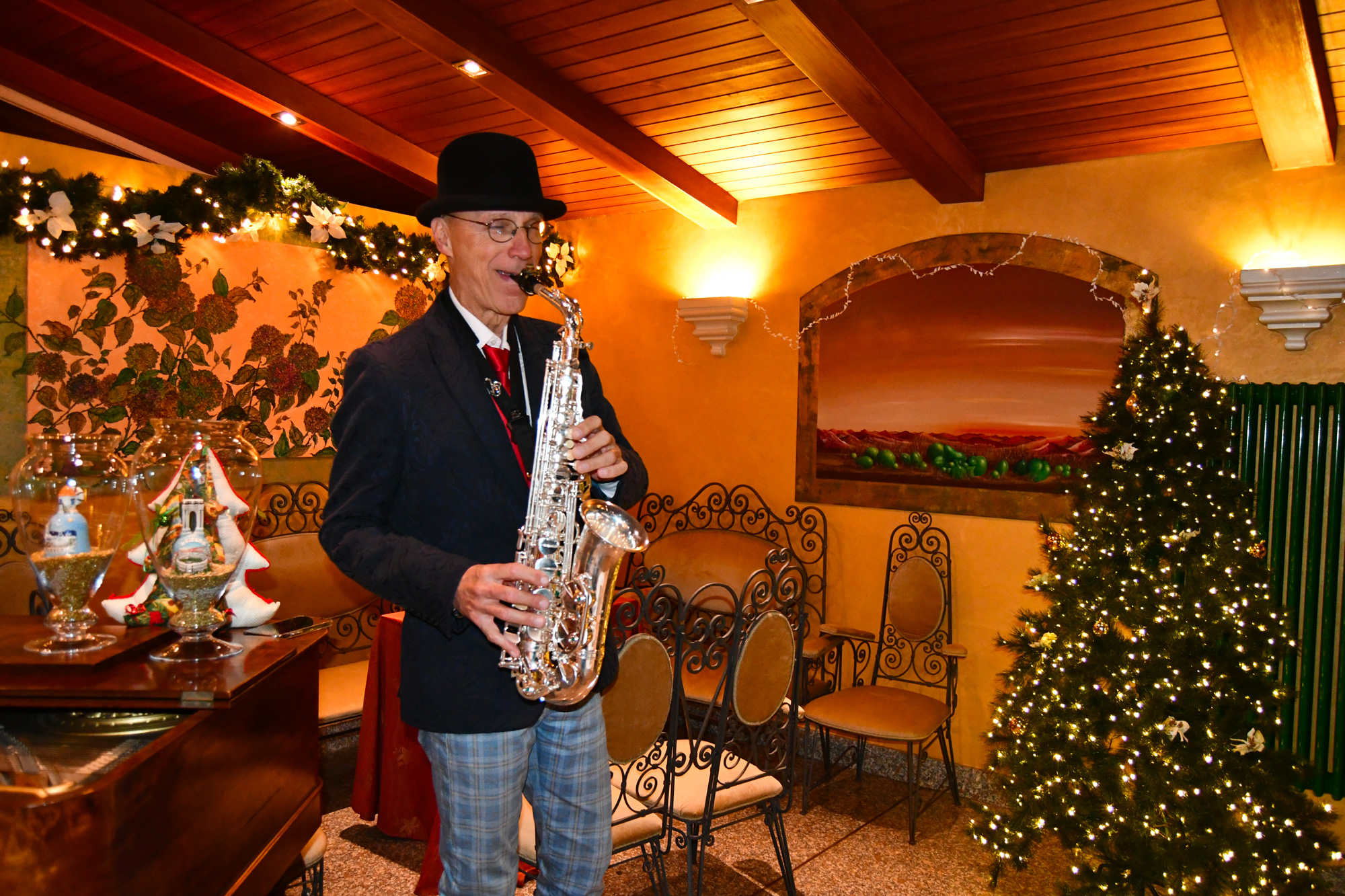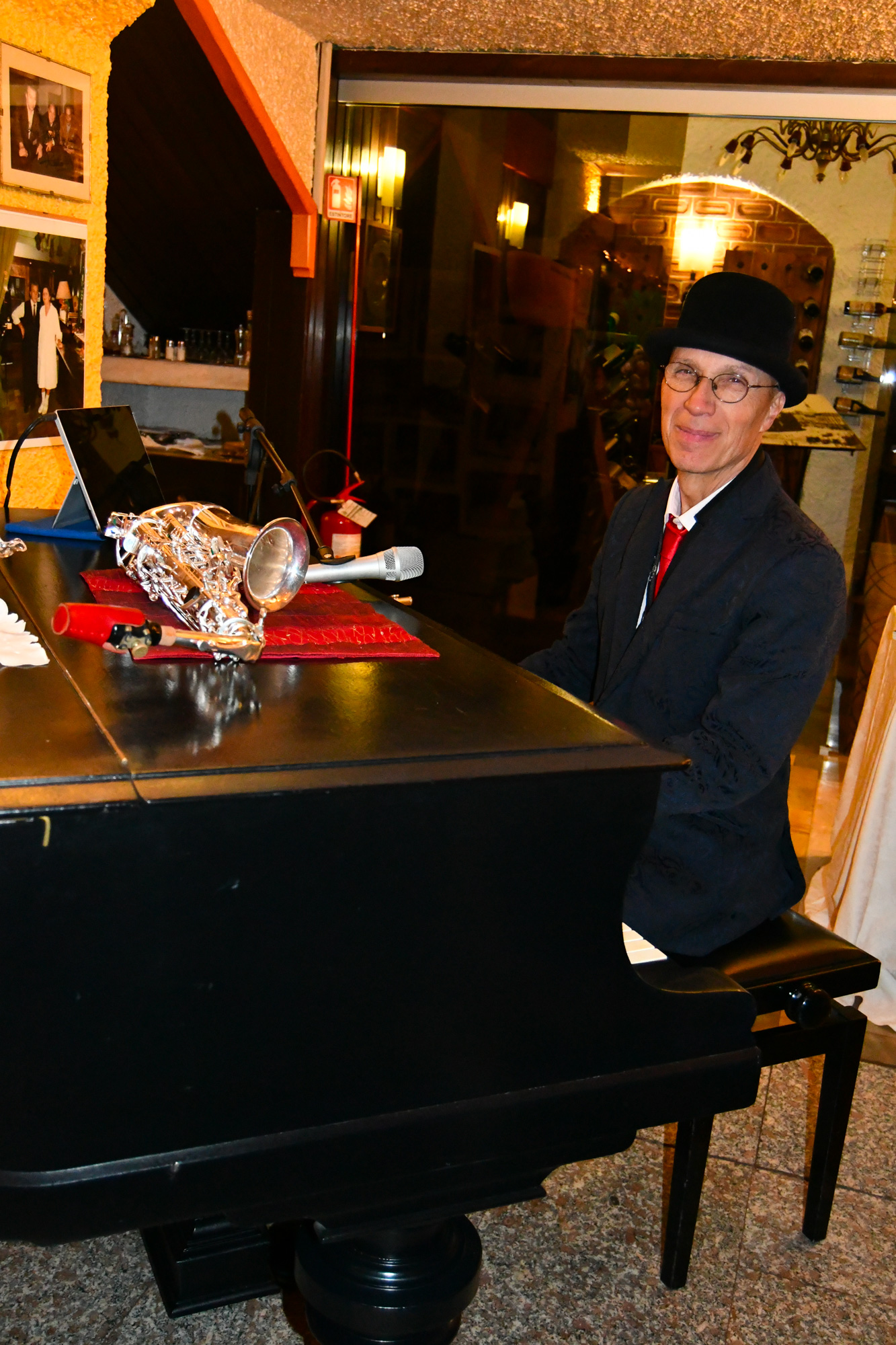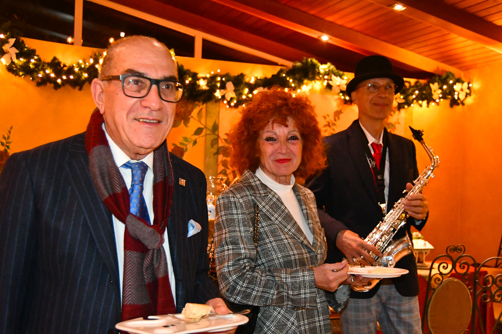 La cena è stata accompagnata da un piacevolissimo sottofondo musicale su pianoforte o sax, ad opera del – nostro ormai – Giorgio Porfirio, ed ulteriormente allietata da un duetto che ha visto il Presidente esibirsi al pianoforte sempre con il nostro Giorgio, questa volta al sax, in una versione apprezzatissima di “Night & Day” di Cole Porter.