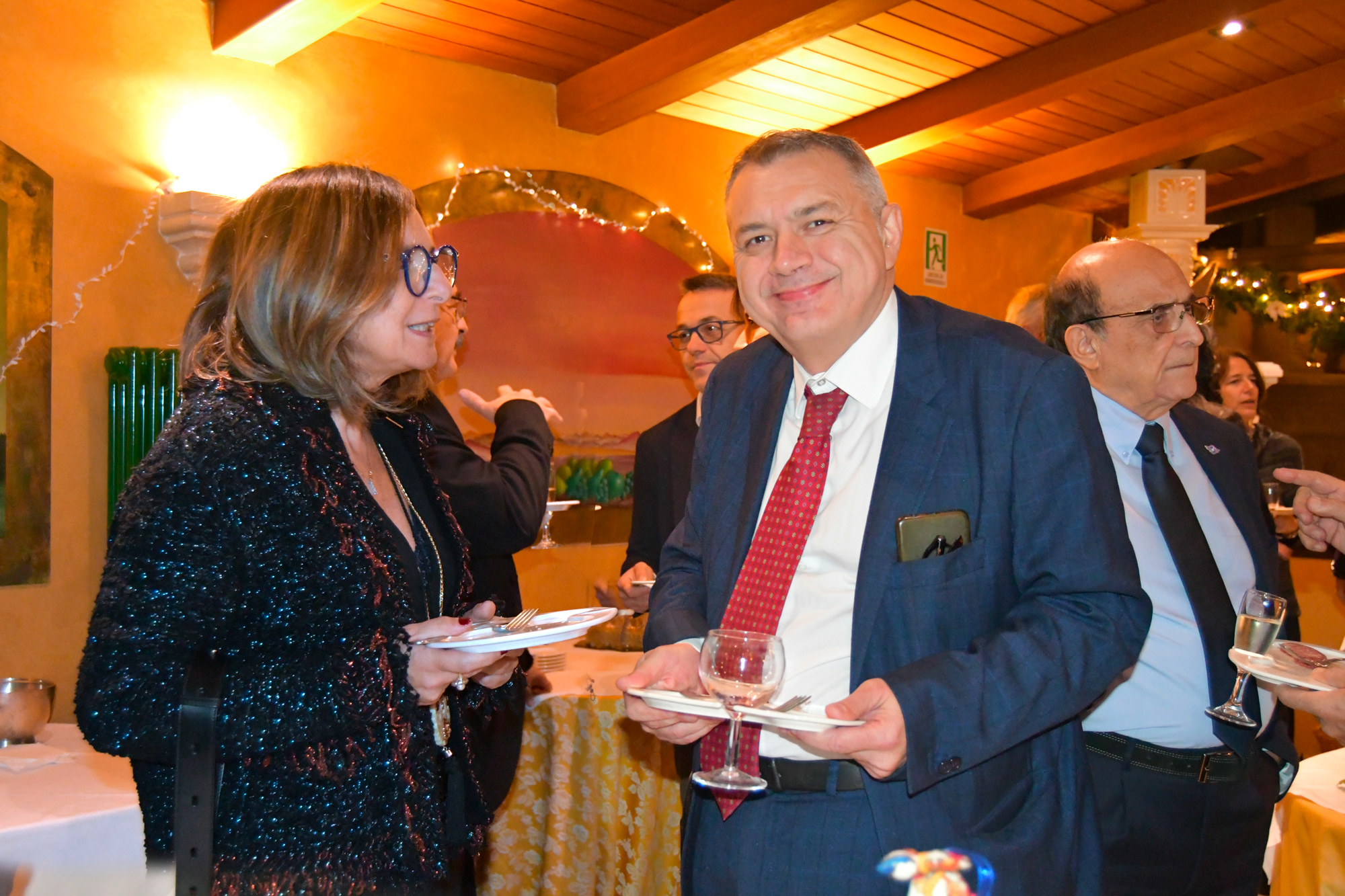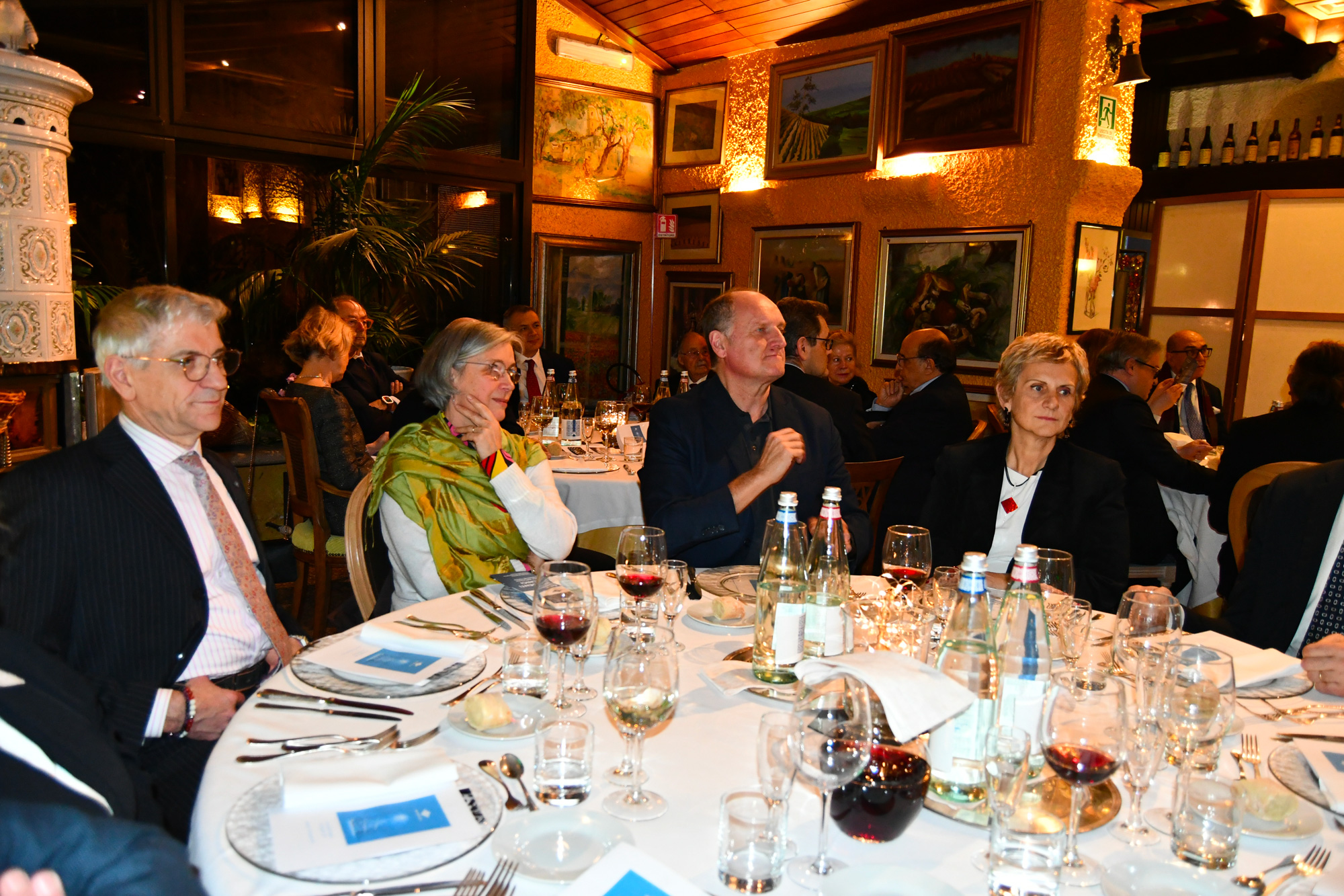 La cena si è aperta con un discorso del Presidente, che ha ringraziato tutti i partecipanti per l’adesione, introdotto gli ospiti di rilievo, presentato il nuovo Direttivo, ed evidenziato come il ritrovarsi in questa occasione, come in tutte le altre della vita del Club, scaturisca – citando Don Luca Peyron – da un desiderio positivo di incontrarsi e confrontarsi. Questo desiderio è il motore di cambiamento che la situazione attuale richiede, è la condizione fondamentale alla base del “serrare le fila” che ci permette di reagire alle pesanti sfide del futuro. Al tavolo del Presidente Marco Mattioli, come graditi ospiti, i Presidenti dei Clubs gemellati Sandra Giraud, Presidente del CDI, Bartolomeo Vassallo, presidente del CDVM, con relativi consorti, e Giorgio Barbero, presidente del AIPD con Roberta Parena, referente per il Piemonte di AIDP. Altre persone di riferimento presenti all’evento, Riccardo Rosi, SKILLAB, e consorte, Paolo Dondo, MESAP.