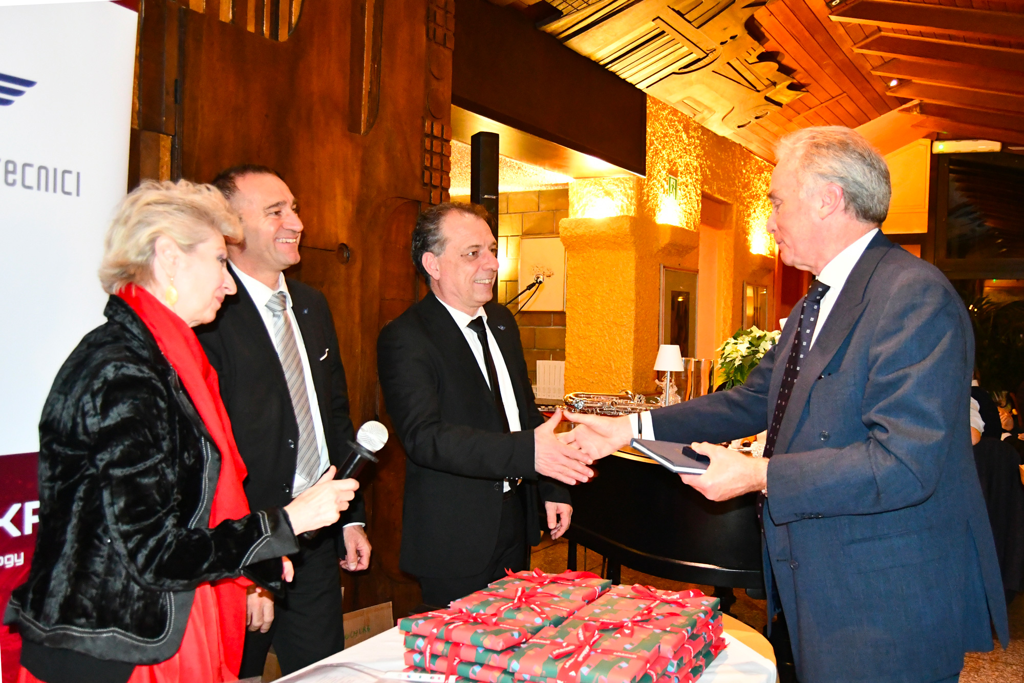 In chiusura del suo intervento, il Presidente Marco Mattioli ha chiamato al tavolo i 2 Vice Presidenti, Niccolò Amadesi e Michele Verdi, per una gradita sorpresa, la consegna di una targa ricordo all’ex Presidente del Club Antonio Errichiello. La targa riporta la seguente dedica “Ad Antonio Errichiello, dal Club Dirigenti Tecnici, con profonda gratitudine per la passione e la dedizione con cui ha contribuito a far crescere il Club nei contenuti, nel prestigio e nella comunità dei Soci”. È seguito un grande applauso ad Antonio da parte di tutti, piacevolmente commosso dalla sorpresa.