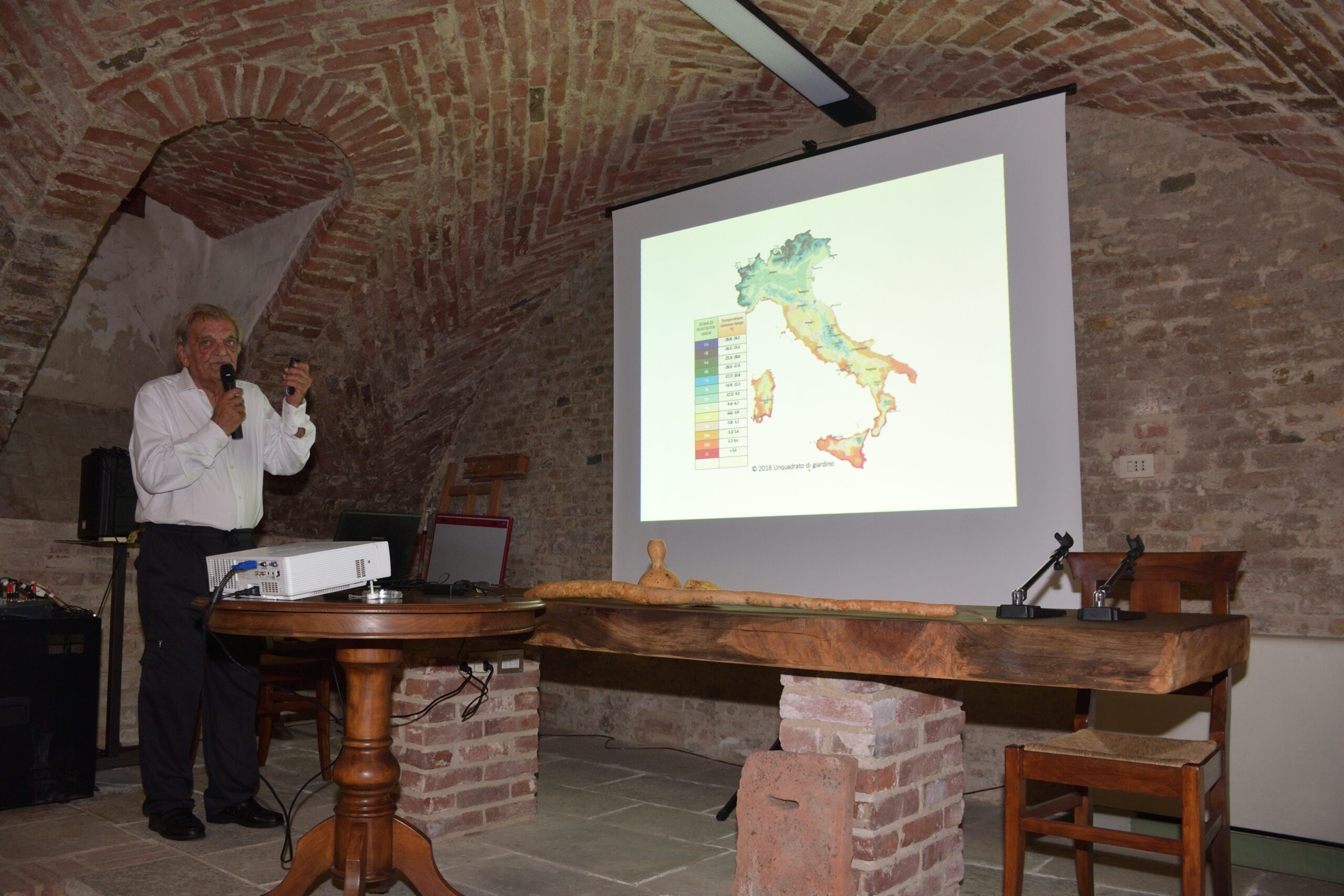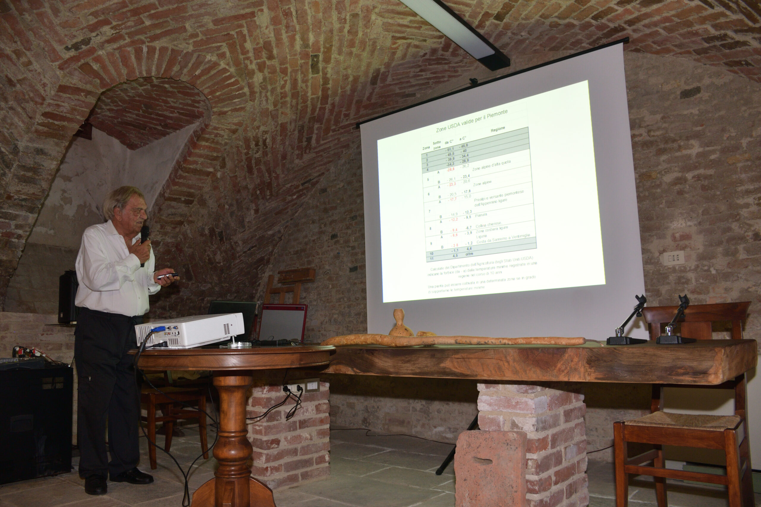 Il prof. Vanetti ha iniziato la conferenza illustrando brevemente la storia della residenza, che ospita attualmente uno spazio museale, dedicato alla storia del Piemonte, ed un giardino esteso su 7500 m2, ospita più di 1000 varietà di piante aromatiche, provenienti da tutto il mondo. La messa a dimora di tali piante ha creato il problema di farle adattare al terreno ed al clima. La possibilità di sopravvivenza di una pianta è connessa alla sua rusticità, cioè alla sua capacità di adattarsi e sopravvivere a condizioni ambientali diverse da quelle di origine, in particolare per quanto riguarda il clima e il tipo di terreno. Indica quindi la resistenza di una pianta alle basse temperature e ad altri fattori come umidità, piovosità e durata del periodo freddo. La rusticità è misurata con riferimento alla scala USDA (United States Department of Agriculture), sistema creato negli Stati Uniti, ma applicato in tutto il mondo, che suddivide il territorio in zone basate sulle temperature minime invernali. L’indice USDA va da 0 ad 11, tiene conto dell’evoluzione della temperatura negli ultimi dieci anni ed è connesso anche all’erogazione da parte statale di contributi agli agricoltori in funzione dell’effettiva capacità delle piante di resistere al freddo.