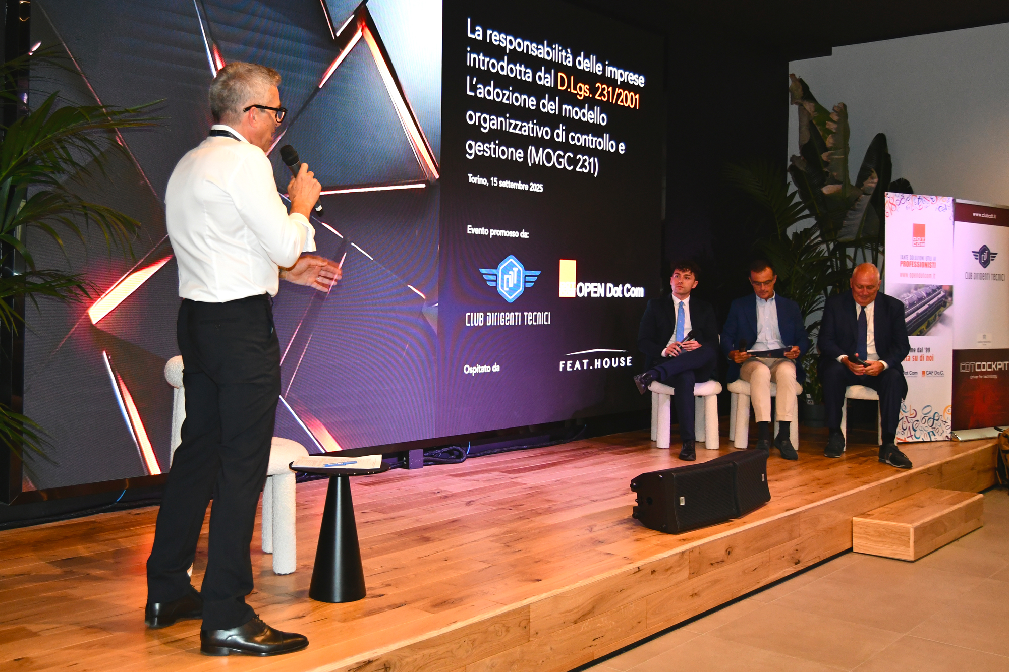 Lo scorso 15 Settembre si è tenuto presso FEAT HOUSE, in via Giuseppe Giacosa 15 a Torino, l’evento “La responsabilità delle imprese introdotta dal D.Lgs. 231/2001 e l’adozione del modello organizzativo di controllo di gestione“, organizzato dal Club Dirigenti Tecnici nelle persone di Zaverio Lazzero e di Paolo Gibin, inquadrato nell’ambito della serie “I Taccuini del CDT”, e sponsorizzato da Open Dot Com, società di servizi dei Dottori Commercialisti https://www.opendotcom.it/.