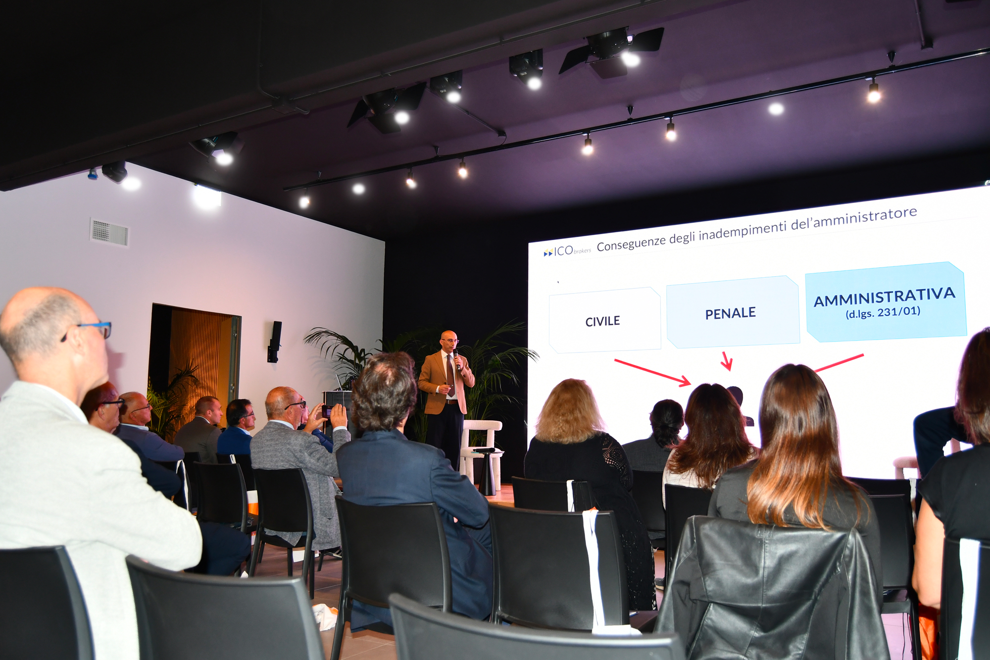 Al termine del dibattito riprende la parola il Presidente del Club, Marco Mattioli per introdurre il socio Dario Scanu che viene chiamato, come da programma, a chiudere l’evento e presentare una breve esplorazione delle coperture assicurative a tutela delle imprese e dei suoi amministratori, in rappresentanza della ICO Brokers Srl della quale ne è anche amministratore e responsabile dell’attività di mediazione. La stessa Società è uno dei soci sostenitori delle attività del Club.