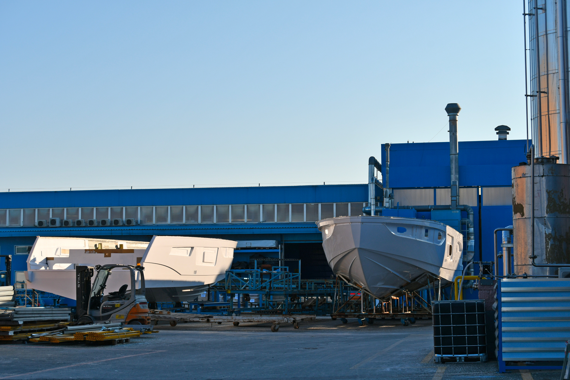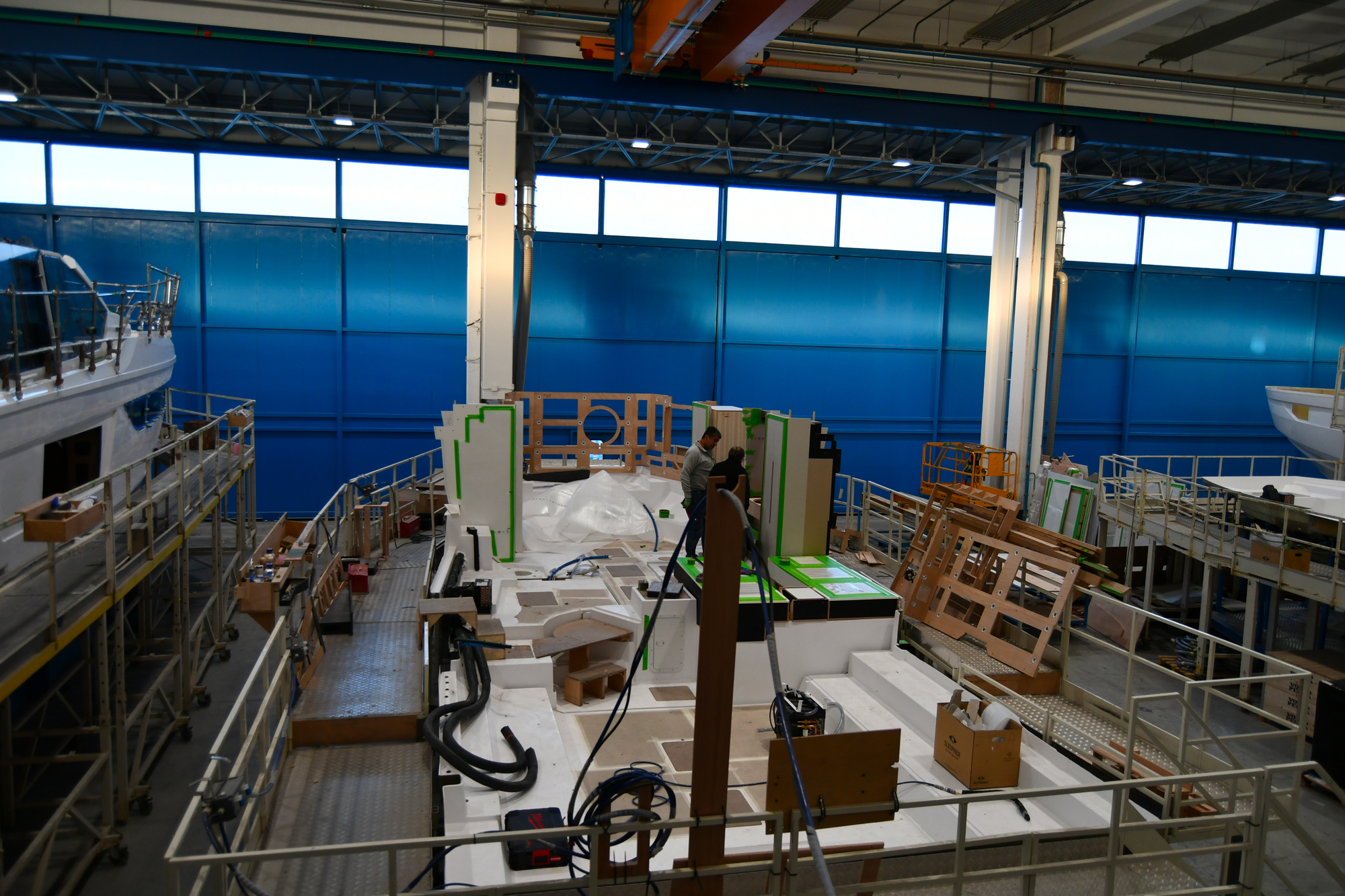 Qui si realizzano scafi di dimensioni che vanno dai 10m ai 44m, su due linee di produzione per oltre 30 modelli in produzione.