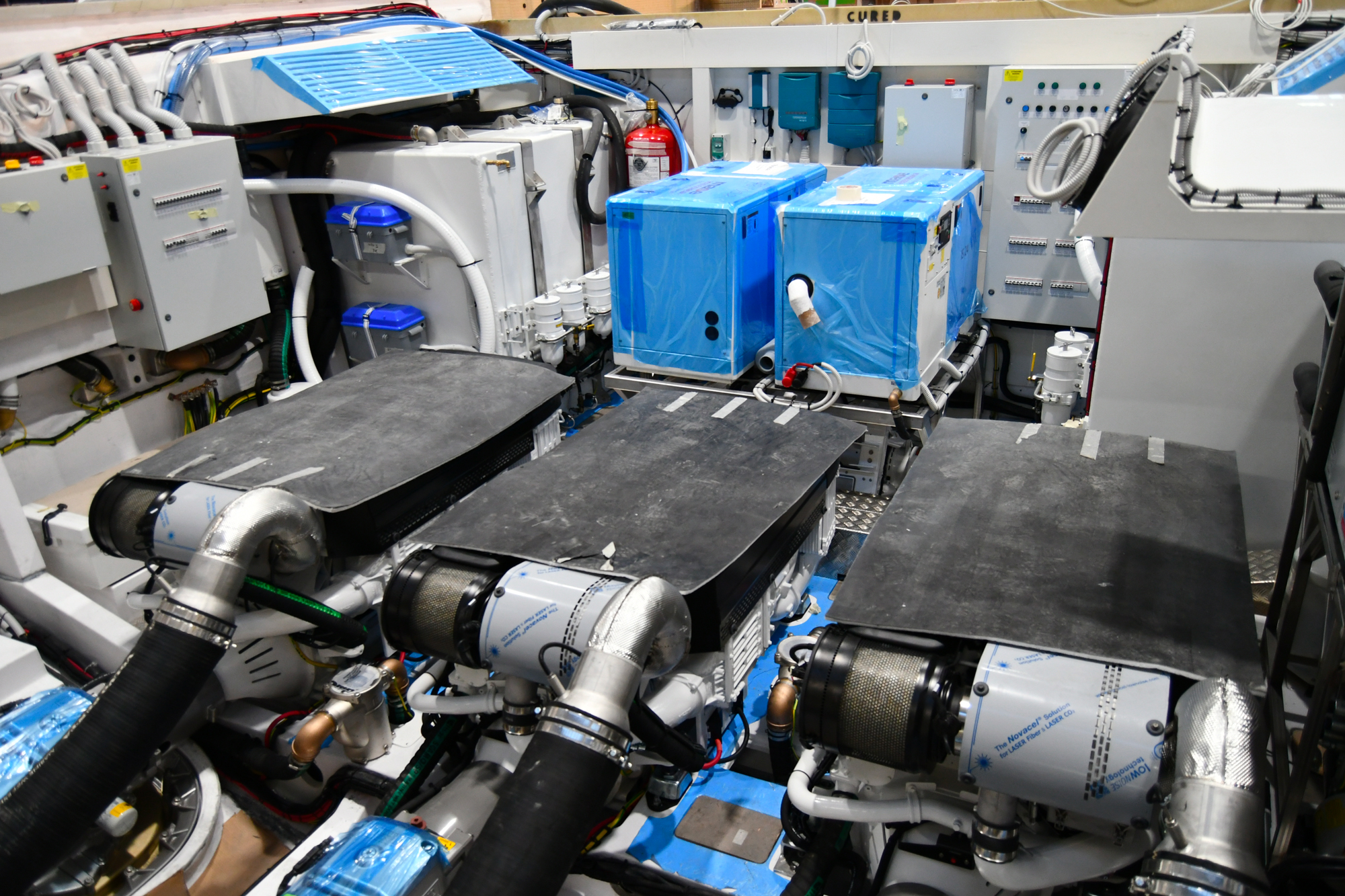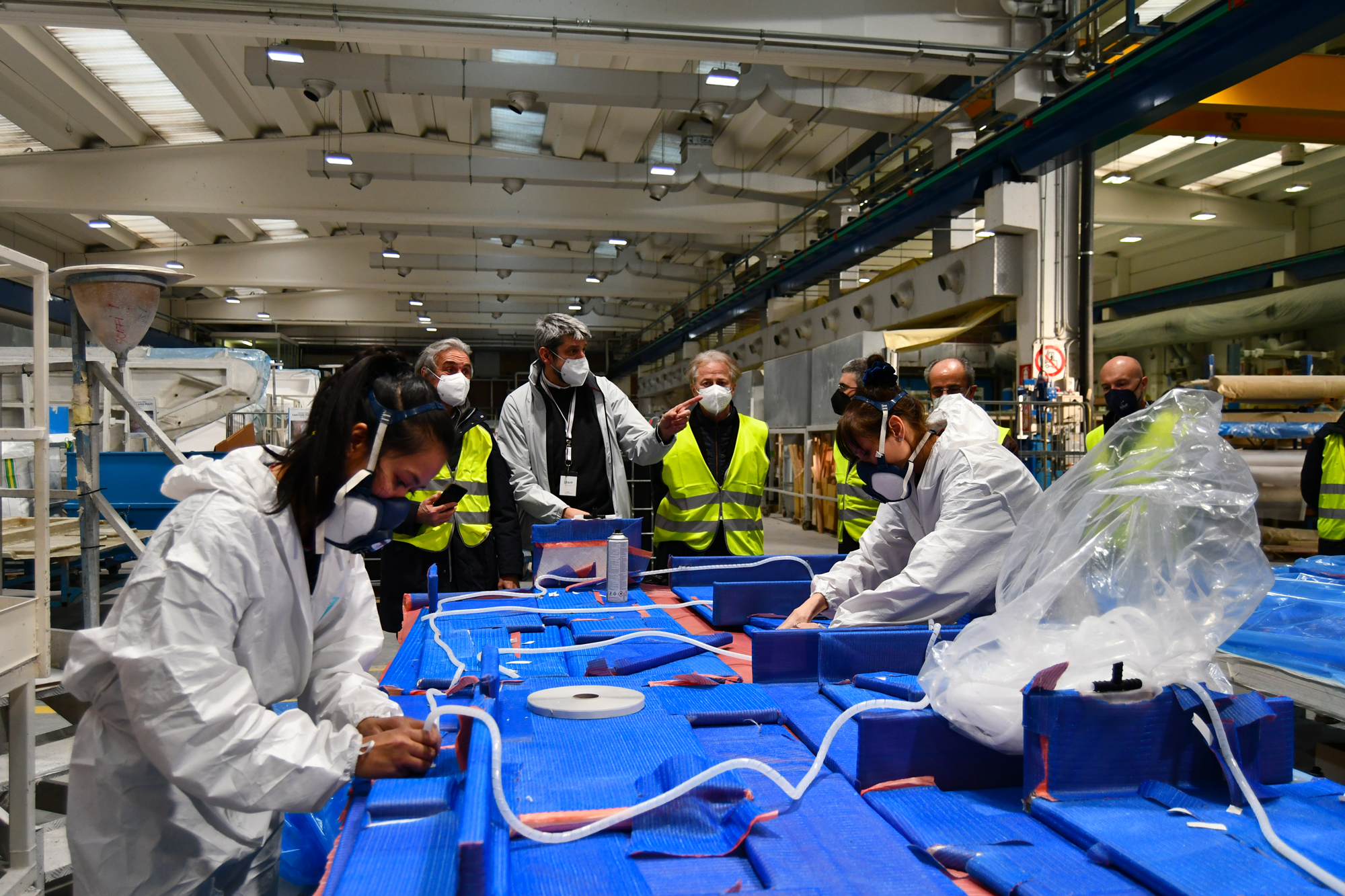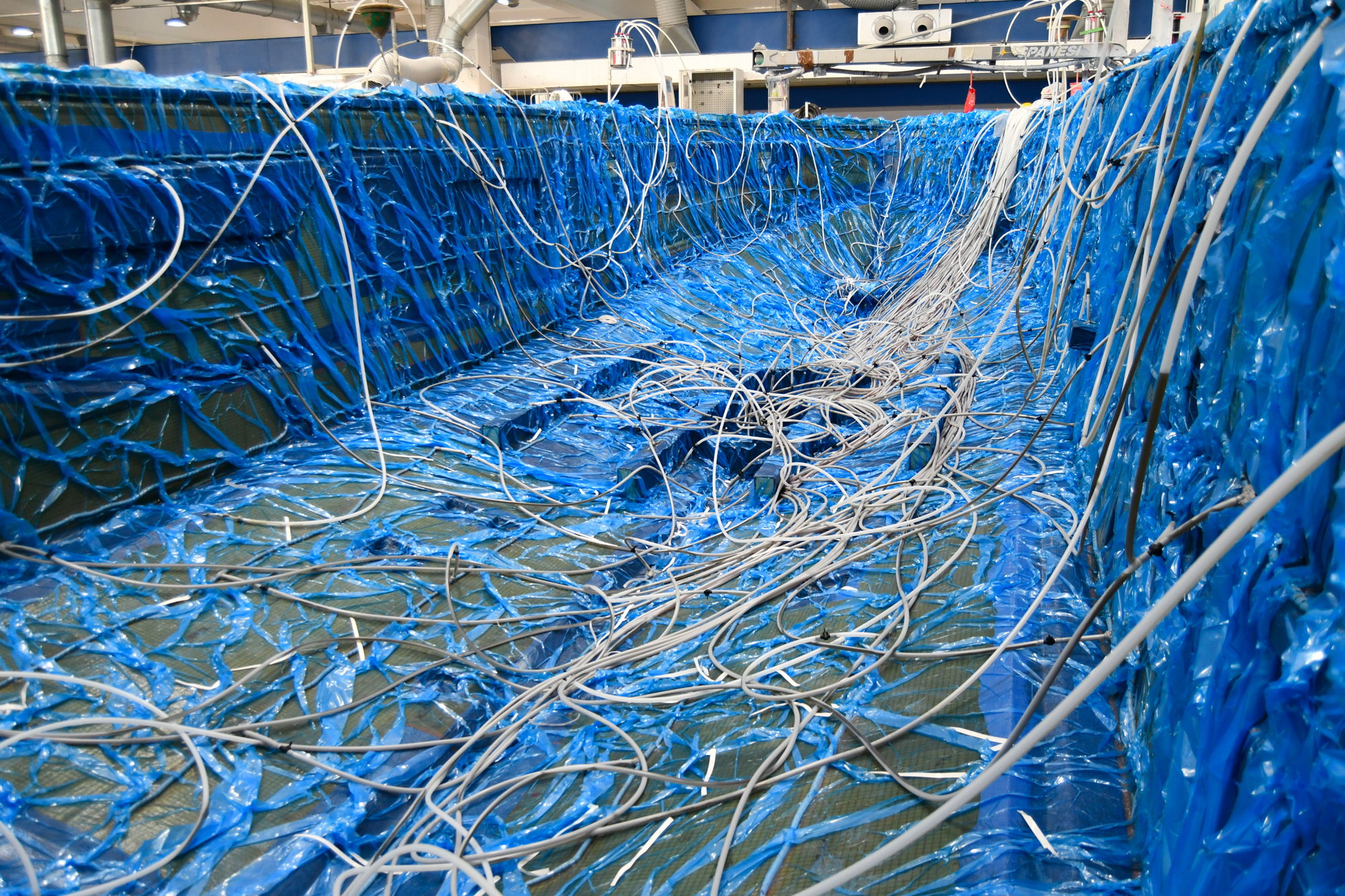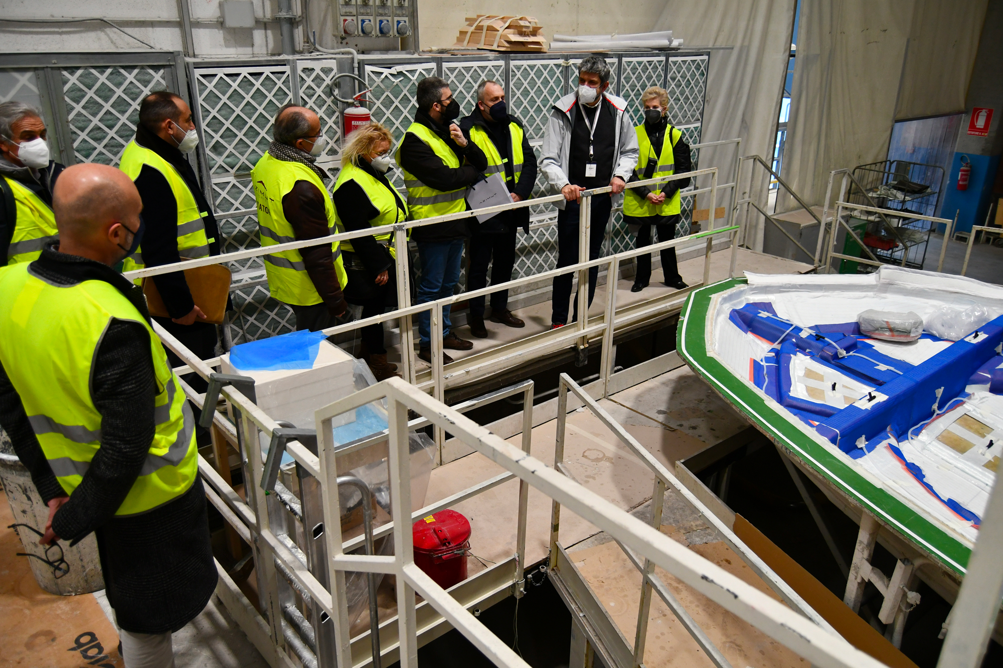 Infatti a fianco dei due reparti per la vetroresina, processo che molto genericamente consiste nell’impregnare di resina poliestere termoindurente una stuoia di fibra di vetro o un materassino anch’esso in fibra di vetro (in gergo mat), ci sono ben 3 reparti di allestimento per l’integrazione di quanto suddetto ed una piscina per le prove.
