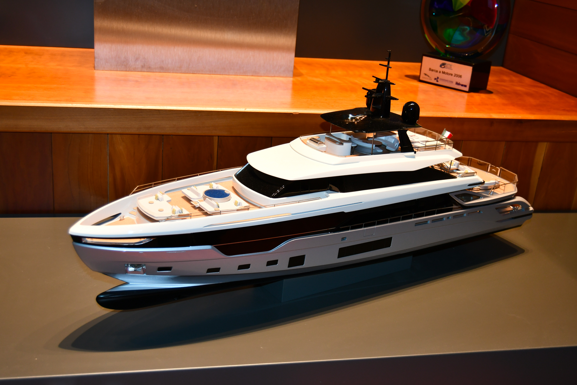 È un mondo molto affascinante quello che lentamente abbiamo percorso negli ampi capannoni di Avigliana fino alla barca finita e pronta al varo, se non dopo aver passato lunghi test anche da parte di esperti teams ingaggiati dal futuro proprietario e che possono durare svariati giorni. Per poter sfilare tra le onde, perché solo così si può definire il modo di porsi di questi natanti, bisogna avere tutto perfettamente a posto ed ogni aspetto da quello tecnologico all’arredamento non è lasciato al caso, fondendo con abile sapienza quello che la tecnologia più avanzata offre in un connubio vincente con l’estetica e l’attrattività.