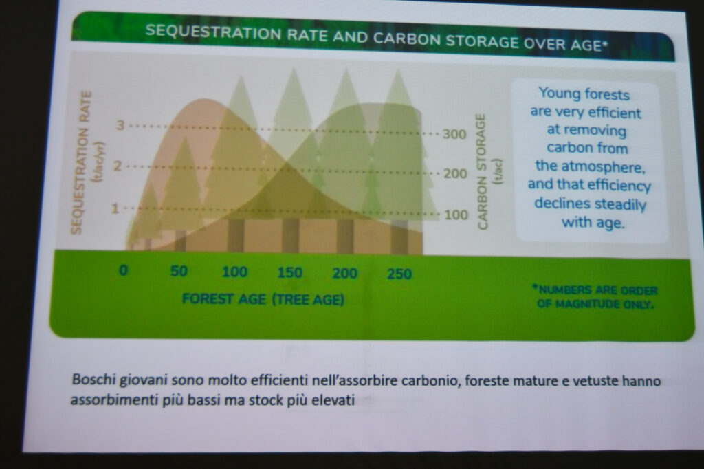 Molto più valida è invece la sostituzione di foreste in via di invecchiamento con altre fatte di alberi giovani in quanto hanno dei flussi molto maggiori: con l’aumentare dell’età media degli alberi aumenta la quantità di carbonio immagazzinata, ma diminuisce la velocità di scambio con l’atmosfera.