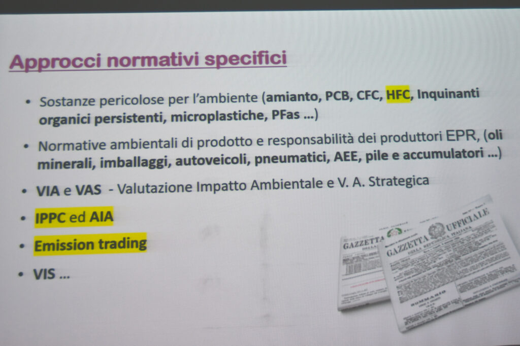 che ha illustrato il rapporto fra imprese e ambiente con un focus particolare sulla conformità legislativa delle imprese in materia ambientale descrivendo anche l’evoluzione del quadro normativo delle norme ambientali a partire da quelle di prima e seconda generazione