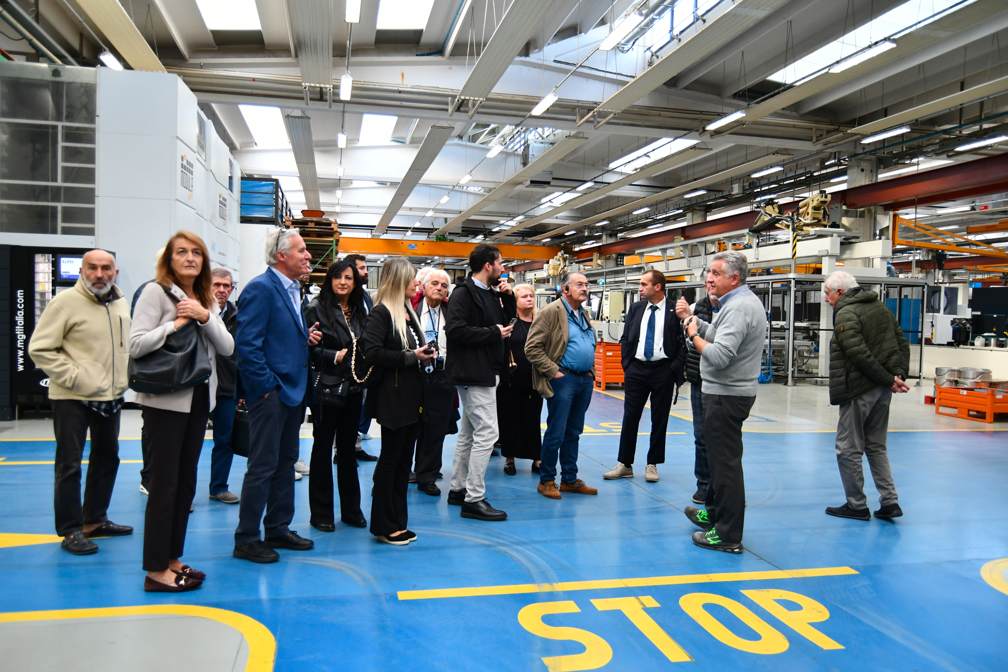La visita ai reparti produttivi ha permesso di osservare da vicino un’organizzazione efficiente e moderna, dove macchine utensili, sistemi automatizzati e aree di montaggio convivono in un flusso produttivo armonico, supportato da un magazzino automatico di ultima generazione.