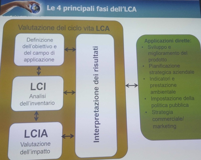 Nella seconda presentazione, curata da Paolo Petaccia, si è approfondito tecnicamente il tema della Valutazione del Ciclo di Vita (LCA – Life Cycle Assessment) di un prodotto, ossia delle modalità e delle tecniche utilizzate per analizzare il potenziale impatto ambientale di un prodotto lungo il suo intero Ciclo di Vita, dall’acquisizione delle materie prime attraverso la fabbricazione, il trasporto e l’utilizzo, fino al riciclaggio e allo smaltimento finale.